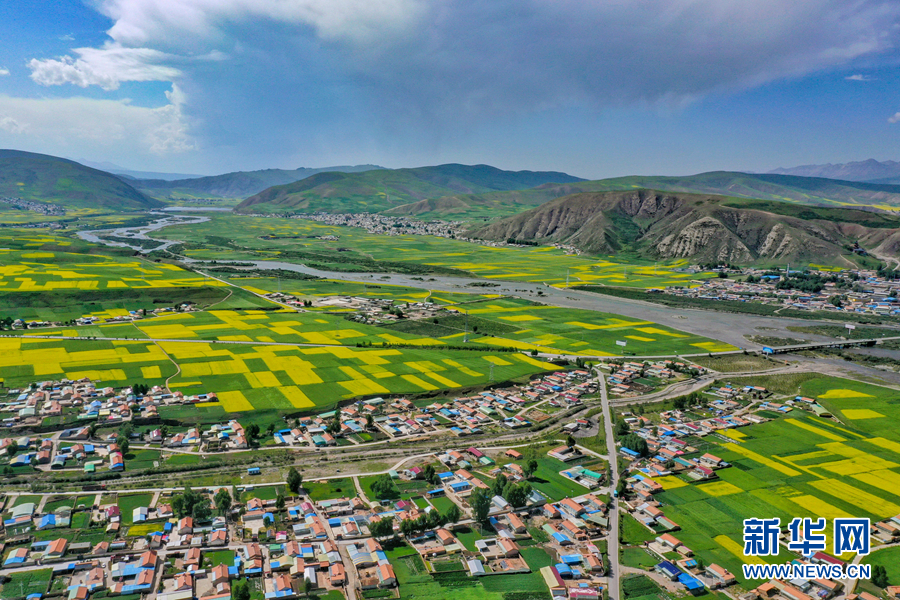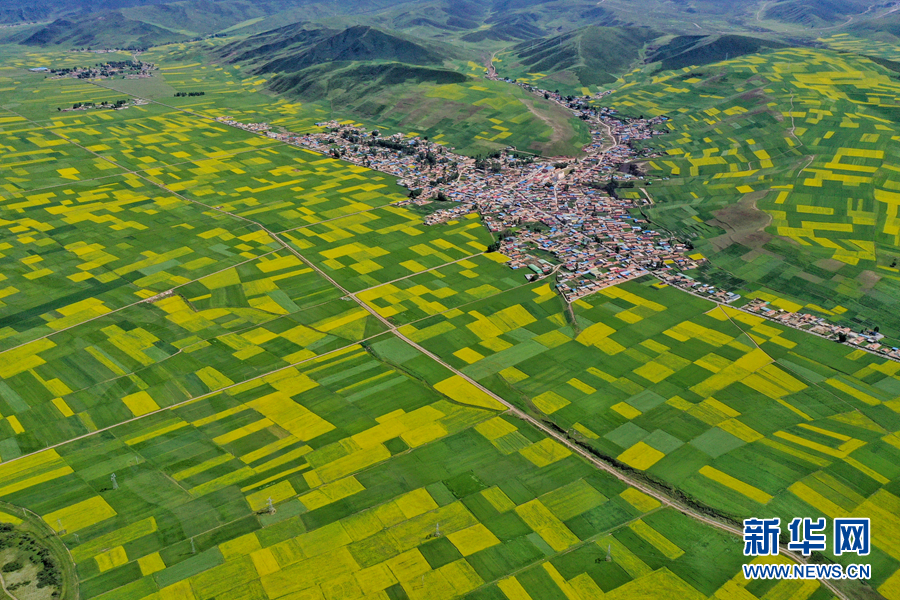 航拍門源縣油菜花海。新華網(wǎng) 宋忠勇 攝