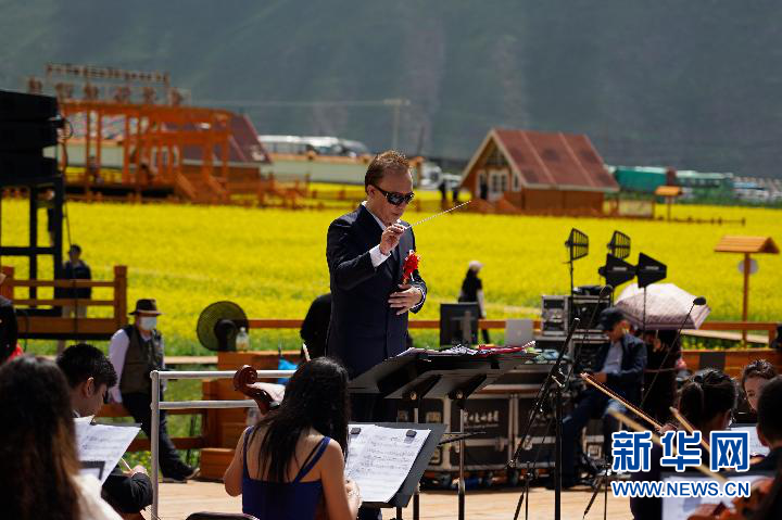在海拔約3000米的油菜花海中,世界名曲、中國(guó)民歌依次奏起,花如海,樂如浪,音樂在山谷中回響。