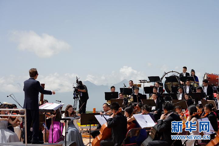 7月9日,交響樂團(tuán)在指揮下演奏曲目。新華社記者陳杰 攝