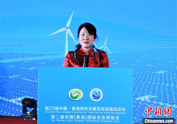 圖為海南州政府副州長獨(dú)金萍進(jìn)行投資環(huán)境說明推介?!☆佨?攝