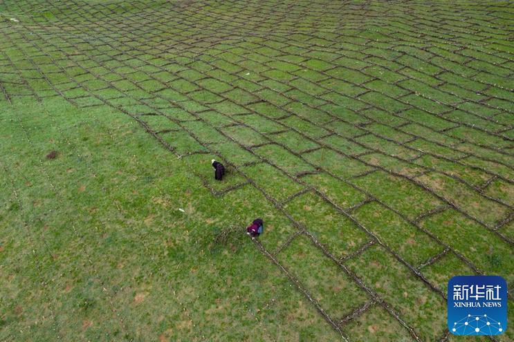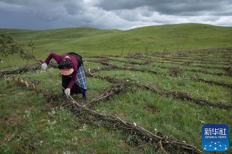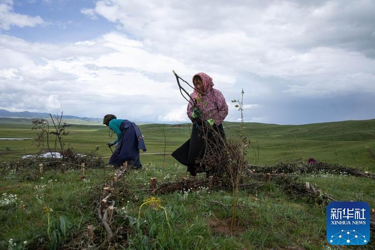 從五月底開始,四川省若爾蓋縣麥溪鄉(xiāng)黑河村村民在當(dāng)?shù)卣M織下,抓住雨水季節(jié)的有利時(shí)機(jī),在草場開展防沙治沙工作。