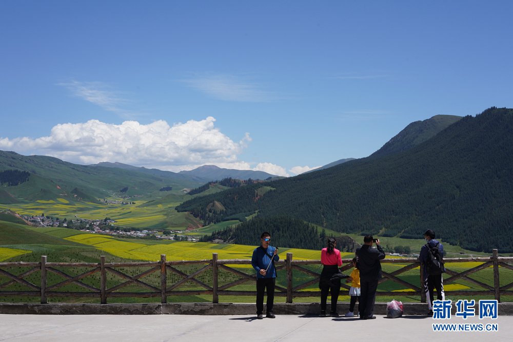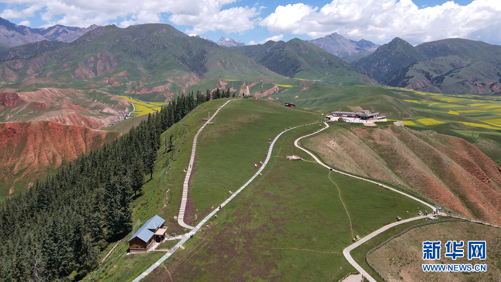 盛夏時(shí)節(jié),青海省海北藏族自治州祁連縣的卓爾山景區(qū)綠意盎然,風(fēng)景如畫(huà)。