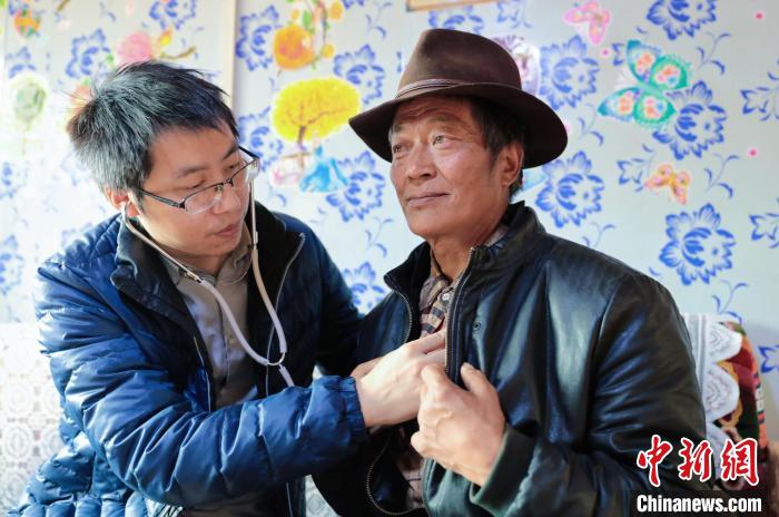 圖為邱筱煒正在為患者診治。上海市援青干部聯(lián)絡(luò)組供圖