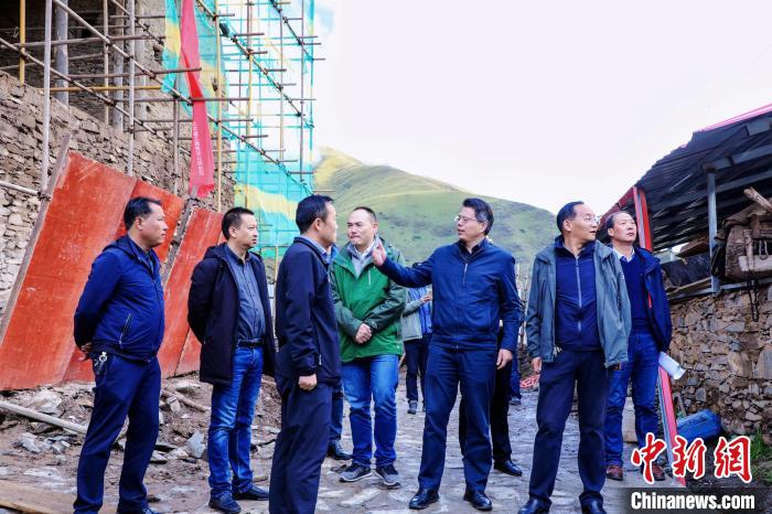 圖為馮志勇(中)在建設項目工地調研。(資料圖) 上海市援青干部聯(lián)絡組 供圖