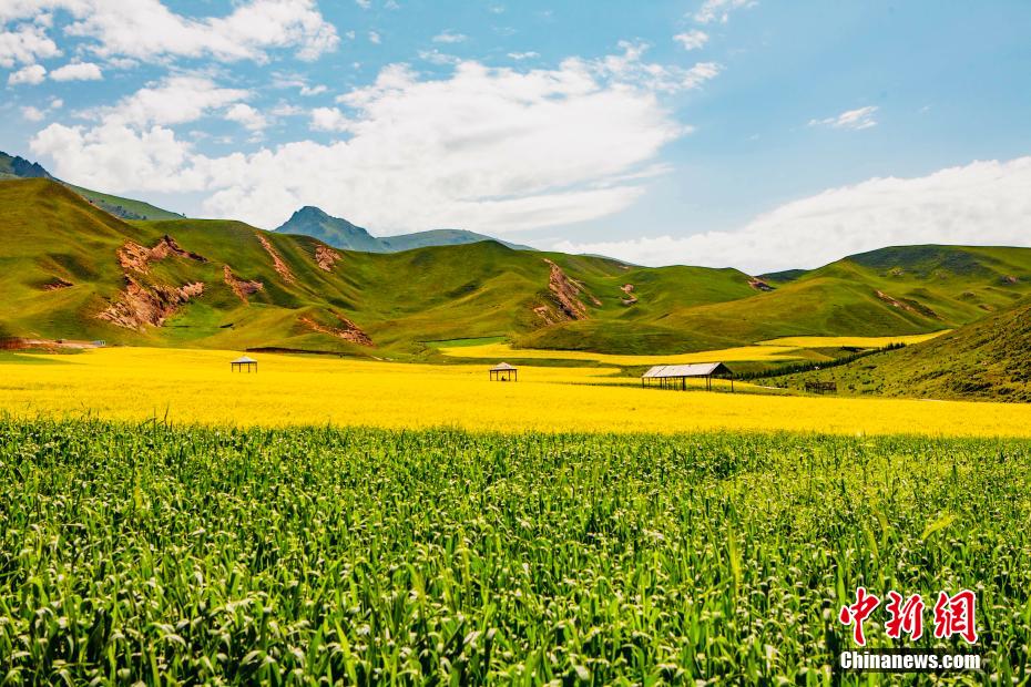 盛夏時節(jié),走進(jìn)青海海北藏族自治州祁連縣,親臨卓爾山讓人感覺到這里環(huán)境幽靜,空氣清新,風(fēng)景秀麗,數(shù)十條褶皺山脈縱橫捭闔,紅色的砂巖礫石放射出丹霞地貌特有的光采。平緩的坡地上,油菜花、青稞,牧草、鮮花、原始森林相互間雜,田野、村莊與大自然融為一體,在大地上描繪出一幅氣勢恢弘色彩斑斕的畫卷。 趙海梅 攝