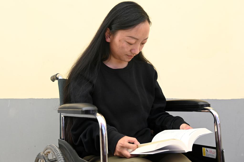 8月9日,仁增卡卓坐在輪椅上看書(shū)。新華社記者 范培珅 攝