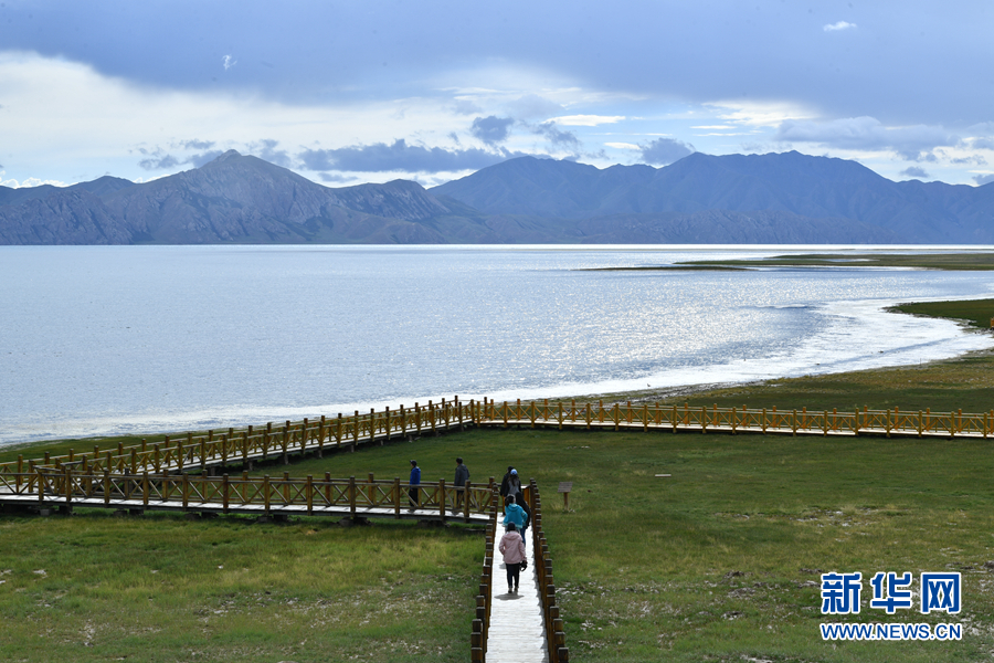 8月14日,游客行走在冬格措納湖岸畔的木棧道上。新華網(wǎng) 卡婭梅朵 攝