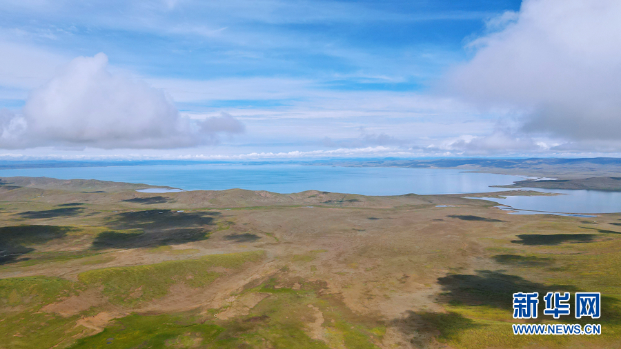 8月14日,遠(yuǎn)眺扎陵湖秋日風(fēng)光。新華網(wǎng) 卡婭梅朵 攝
