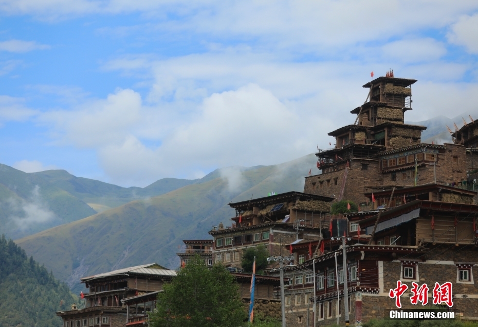 8月17日,日斯?jié)M巴碉房外景。日斯?jié)M巴碉房坐落于四川省阿壩藏族羌族自治州壤塘縣宗科鄉(xiāng)加斯?jié)M村石波寨,修建于元末明初,距今已有近700年的歷史。碉房共分九層,高25.6米,外型呈階梯狀,是一座保存完好的藏式傳統(tǒng)民居。2006年,日斯?jié)M巴碉房被列為全國重點(diǎn)文物保護(hù)單位。 中新社記者 王磊 攝