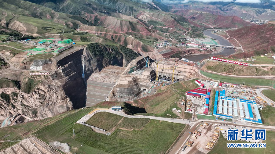 初秋時(shí)節(jié),在位于青海省果洛藏族自治州瑪沁縣拉加鎮(zhèn)的瑪爾擋水電站建設(shè)現(xiàn)場(chǎng),施工人員緊張開展作業(yè),運(yùn)輸車輛往返穿梭、高架塔吊巨臂揮舞……現(xiàn)場(chǎng)繁忙而有序。