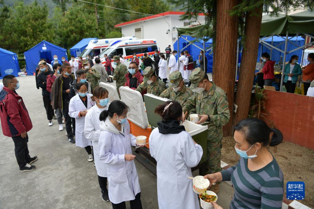 9月6日,西藏軍區(qū)川藏兵站部某大站救援隊抵達瀘定縣磨西鎮(zhèn),開設(shè)臨時熱食供應站為救援人員和受災群眾提供保障。新華社發(fā)(任云 攝)