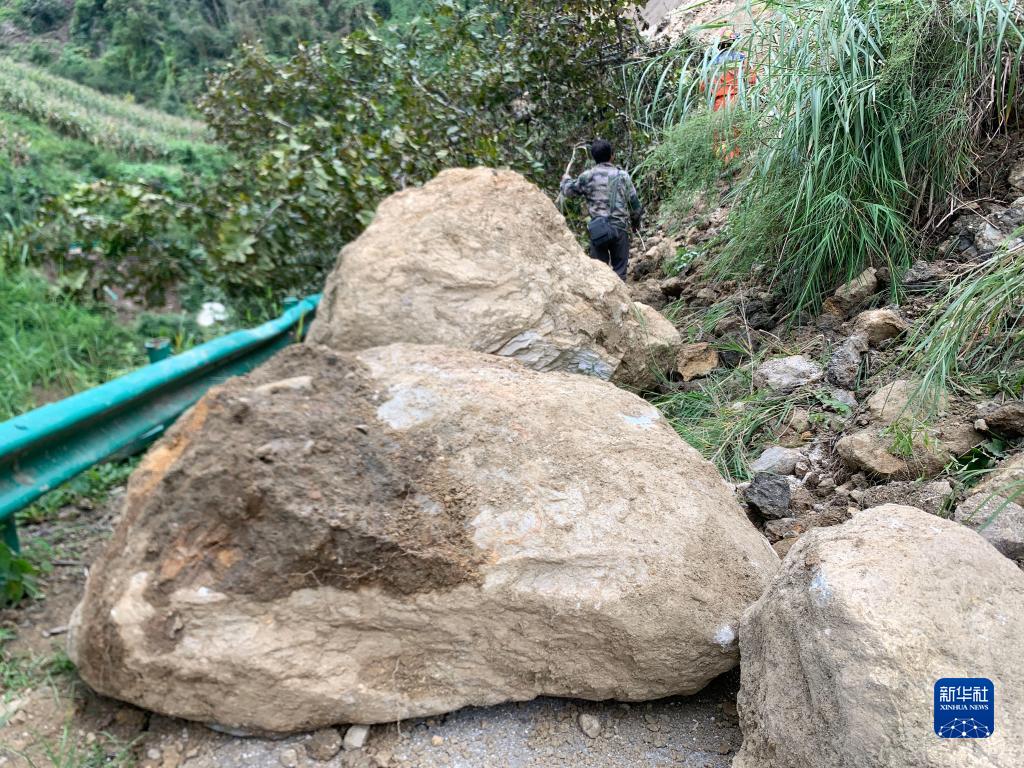 9月7日在雅安市石棉縣王崗坪彝族藏族鄉(xiāng)拍攝的損毀道路。新華社記者 才揚 攝