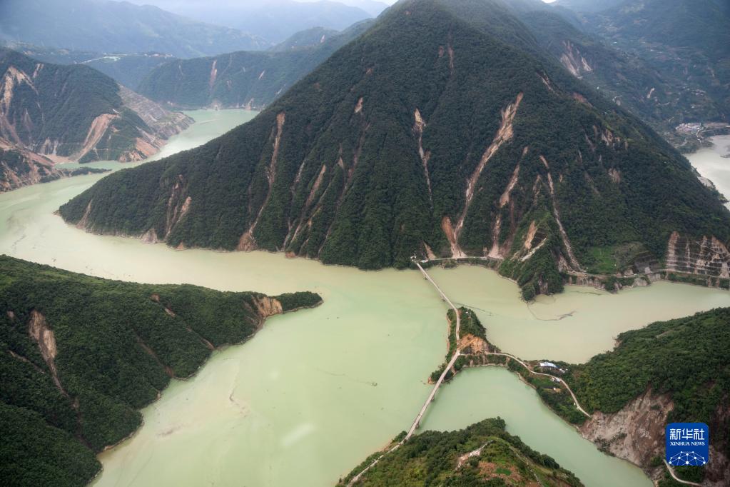 這是9月7日拍攝的雅安市石棉縣王崗坪彝族藏族鄉(xiāng)幸福村二組附近的照片,能看到山體多處滑坡(無人機照片)。新華社記者 才揚 攝
