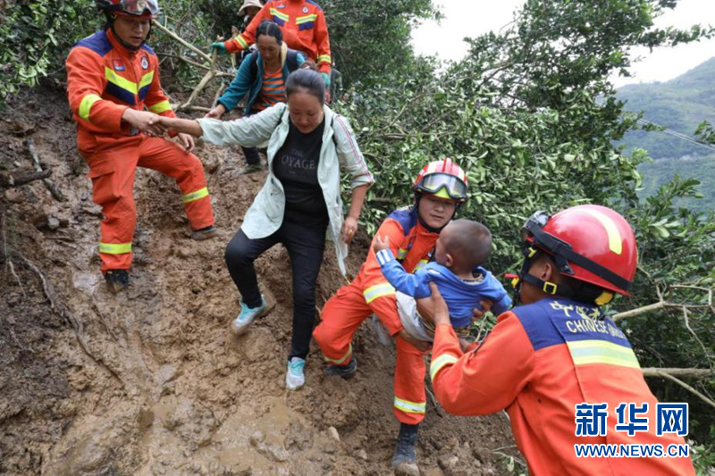 救援人員正在幫助群眾轉(zhuǎn)移。四川省應急管理廳供圖。