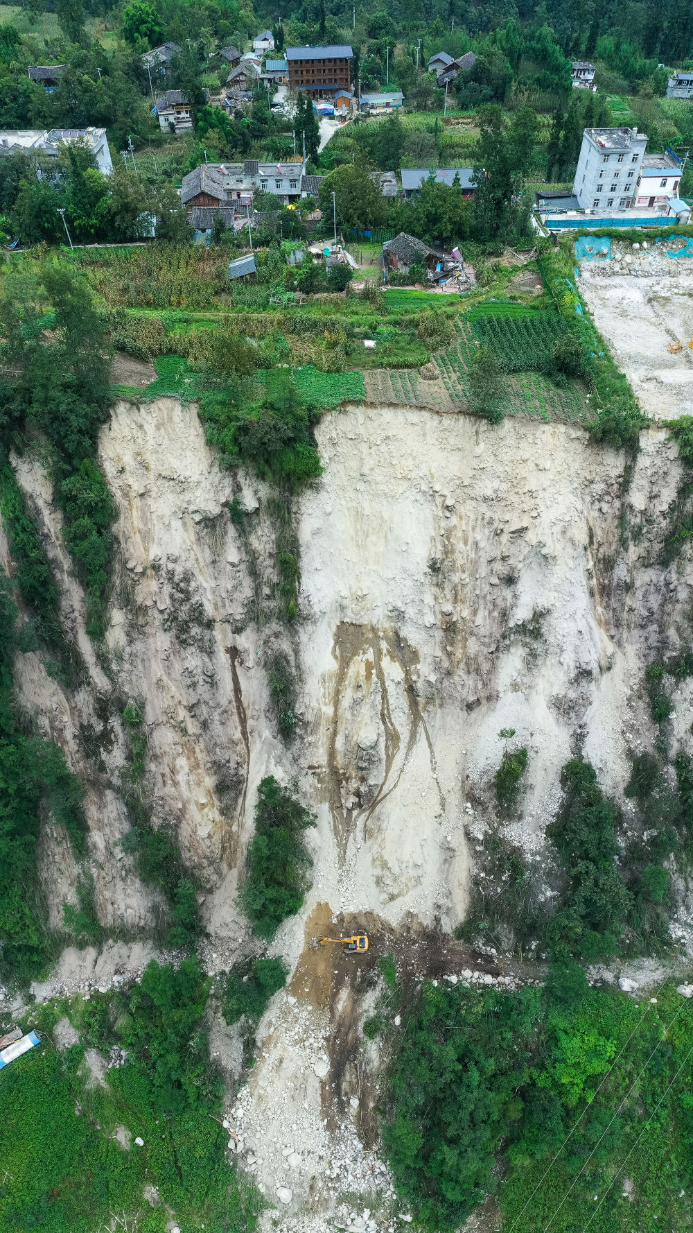 這是9月7日拍攝的幸福村二組附近的照片,可看到山體多處滑坡(無人機照片)。