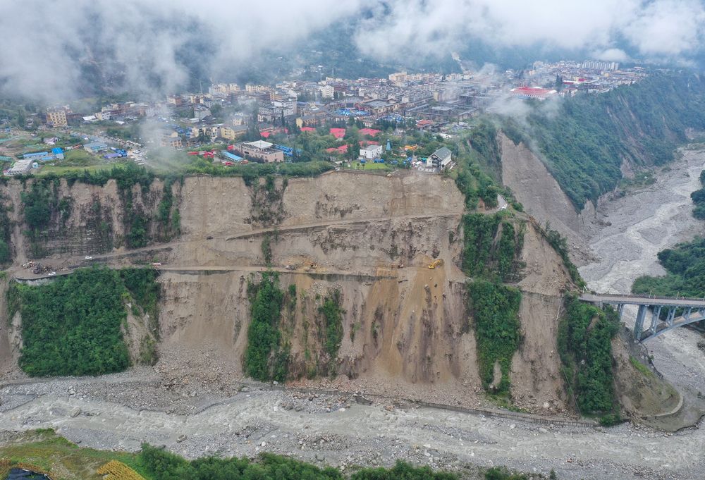 9月6日拍攝的得妥鎮(zhèn)附近的山谷,地震導致了山體垮塌。