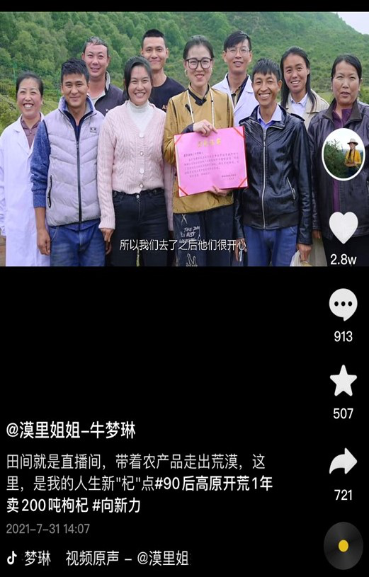 越來越多的粉絲留言問牛夢琳,如何購買她家種植的枸杞,在經歷了幾個月的準備工作后,2020年初,牛夢琳第一次直播銷售枸杞。