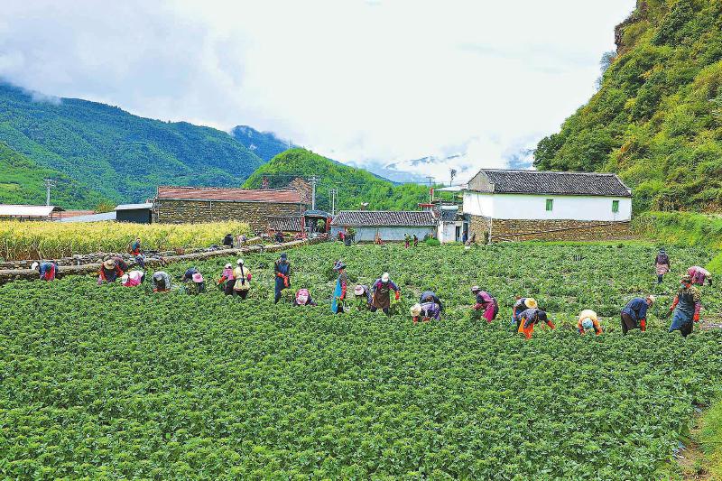 9月20日,金川縣勒烏鎮(zhèn)新開(kāi)宗村的萵筍地里,村民搶收萵筍。 代永清 攝