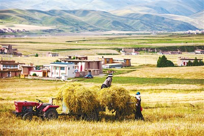 秋天的平原、河谷、山野里,大片大片的青稞翻滾著麥浪,金黃耀眼,如同一塊塊黃色、喜悅、飄飛著麥香的金色云朵,綿延到天與地的盡頭。農(nóng)民在麥田間忙著彎腰、揮鐮、系起青稞束,紅臉蛋綻滿喜悅,向大地和來往的人訴說著大自然的饋贈。高原上人們臉上的“高原紅”是地理、氣候環(huán)境等造成的面部紅血絲,但沒有人會否認(rèn),這也是一種勤勞的美。在阿壩縣,這種勤勞與汗水澆灌出累累碩果:青稞、蔬菜、中藥材、牧草等基地規(guī)模達12.3萬畝,年接待游客近100萬人次,農(nóng)村居民人均可支配收入增長9.7%……