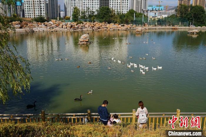 圖為游客在西寧野生動(dòng)物園內(nèi)觀(guān)賞水鳥(niǎo)。馬銘言 攝