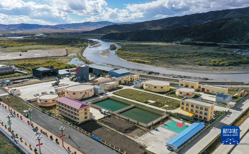 這是10月18日在四川省阿壩藏族羌族自治州若爾蓋縣唐克鎮(zhèn)拍攝的生活污水處理廠(無人機照片)。