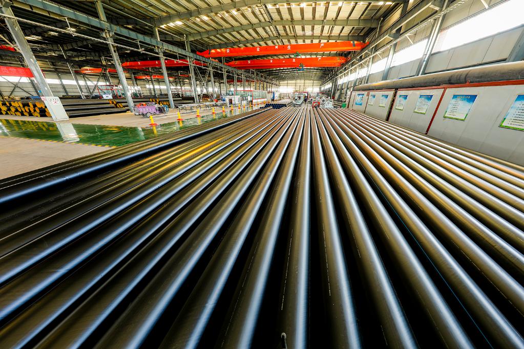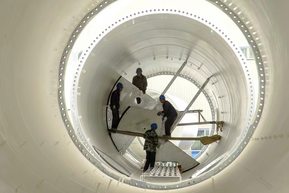 圖為工人在加工新生產(chǎn)的風(fēng)電塔筒。(受訪者供圖)