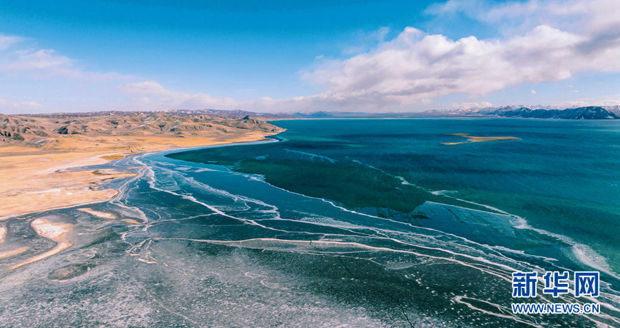 航拍:黃河源頭冬格措納湖 冰雪消融展風姿