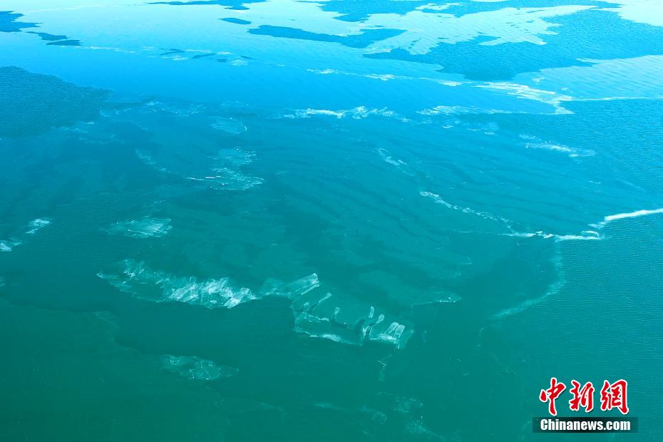 近日,素有“高原藍(lán)寶石”之稱的青海湖開始進(jìn)入冰封期。青海湖水體周邊的零星結(jié)冰,青海湖西部邊緣、北部湖岸區(qū)、鳥島、青海湖斷崖等地出現(xiàn)成片結(jié)冰區(qū)。航拍畫面中可以看到湖心范圍尚有大面積未結(jié)冰區(qū)域。青海湖是中國最大的內(nèi)陸咸水湖。冬日里的青海湖,寧靜而內(nèi)斂。千里冰封,宛如童話世界。封凍的湖面如同破碎的“玉帶”,形成獨特的景觀。張世偉 攝