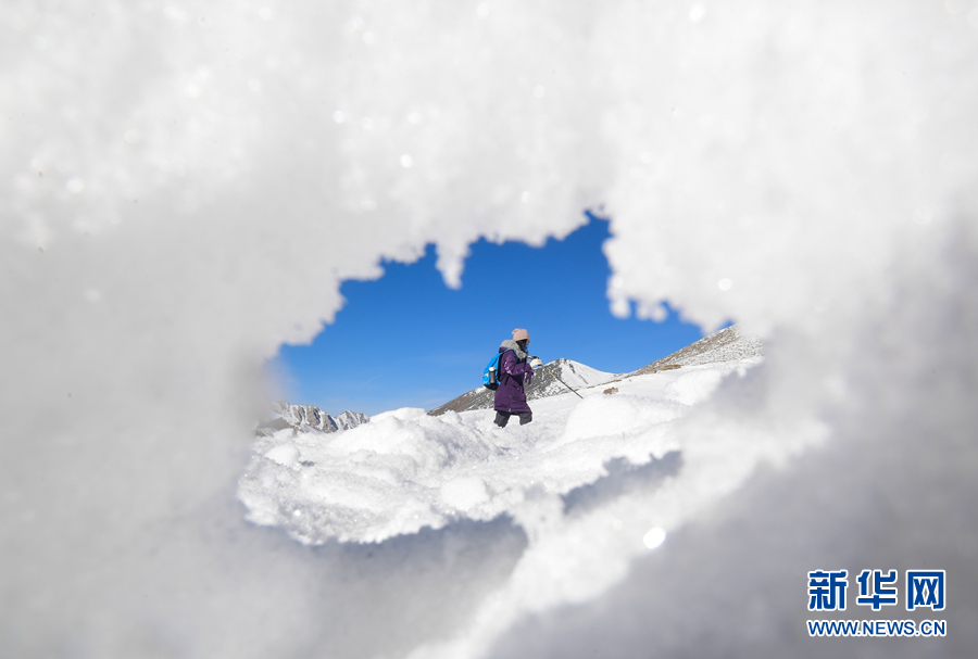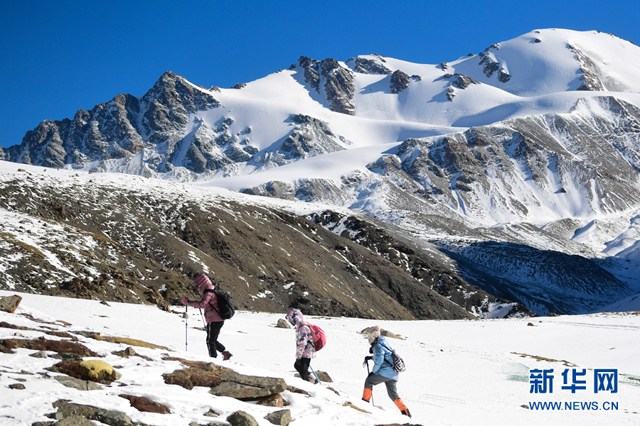 2022年1月1日,登山愛(ài)好者攀登崗什卡雪峰。新華社記者 張龍 攝