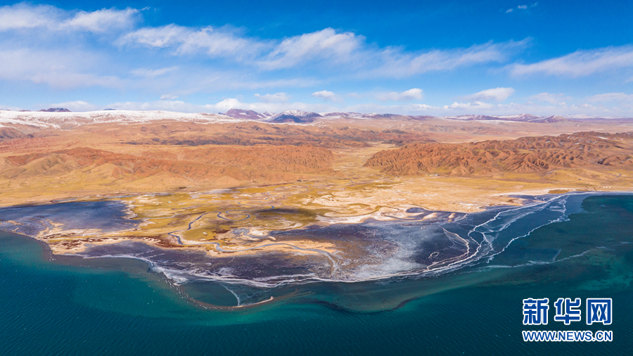 12月10日航拍的冬日青海湖。新華網(wǎng)發(fā)(宋忠勇 攝)