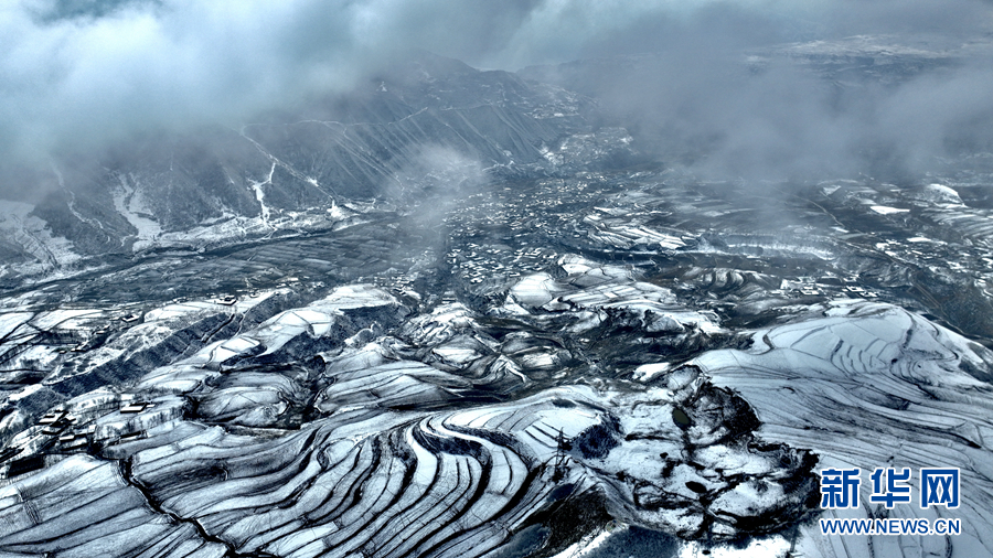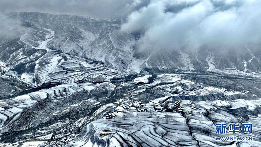 航拍青海省海東市化隆回族自治縣雄先藏族鄉(xiāng)雪景。新華網(wǎng)發(fā)(李玉峰 攝)