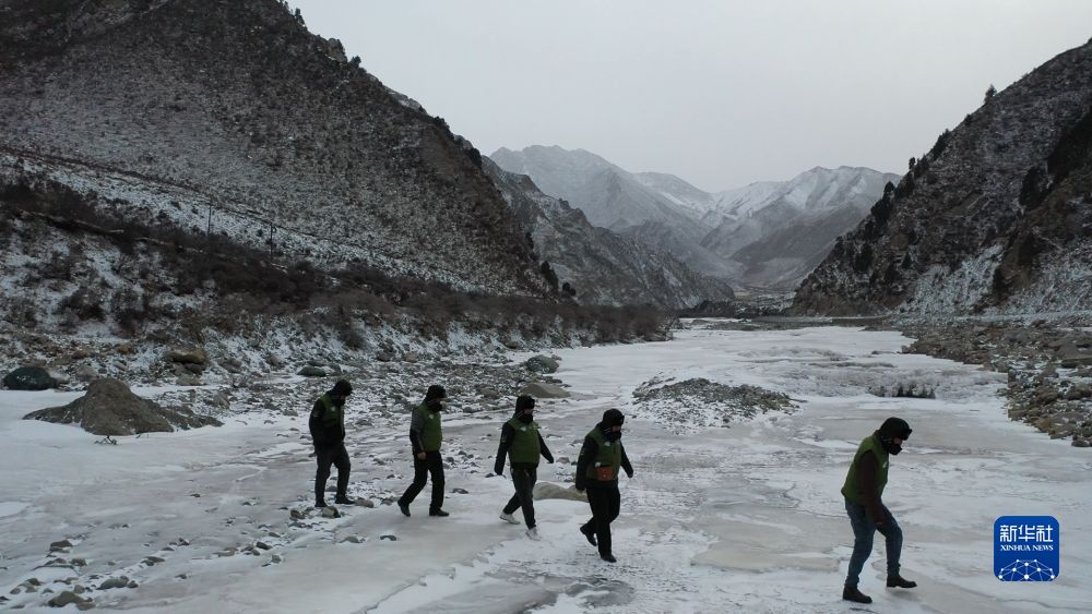 1月14日下午,管護員在野外巡山(無人機照片)。新華社記者 李占軼 攝