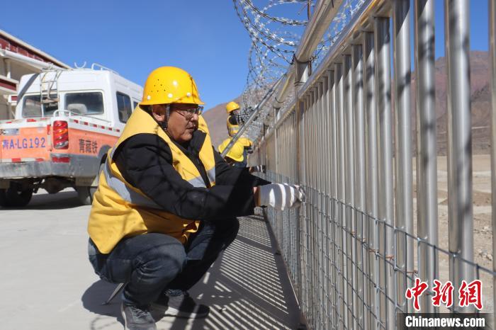 圖為馬智文加固車站松動的網(wǎng)圍欄密布網(wǎng)。馬生明 攝