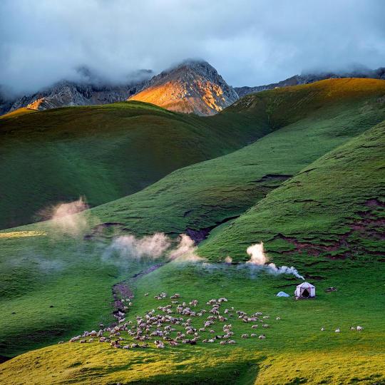 圖為焦生福作品《晨光炊煙》。青海省祁連山自然保護(hù)協(xié)會供圖