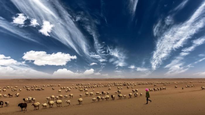 圖為焦生福作品《穿越沙漠的羊群》。青海省祁連山自然保護(hù)協(xié)會供圖