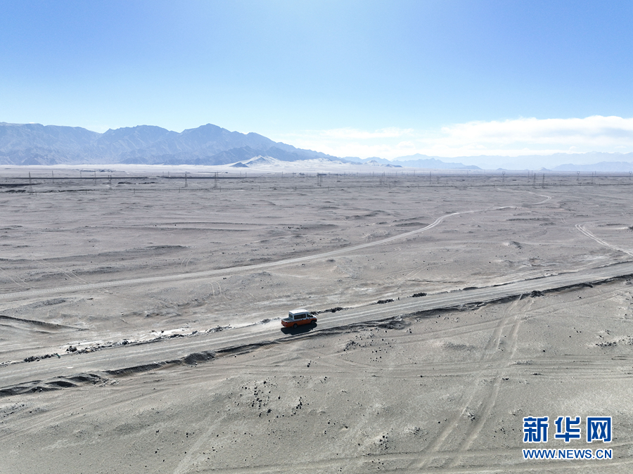 2月5日,青藏集團(tuán)有限公司西寧供電段格爾木檢修車間工長(zhǎng)王永忠與同事駕車前往變電所進(jìn)行巡檢(無人機(jī)照片)。新華社記者 張龍 攝