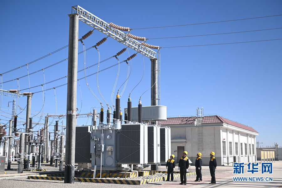 2月5日,在青藏集團(tuán)有限公司西寧供電段格爾木南變電所,王永忠(左二)與同事在巡檢供電設(shè)備。新華社記者 張龍 攝