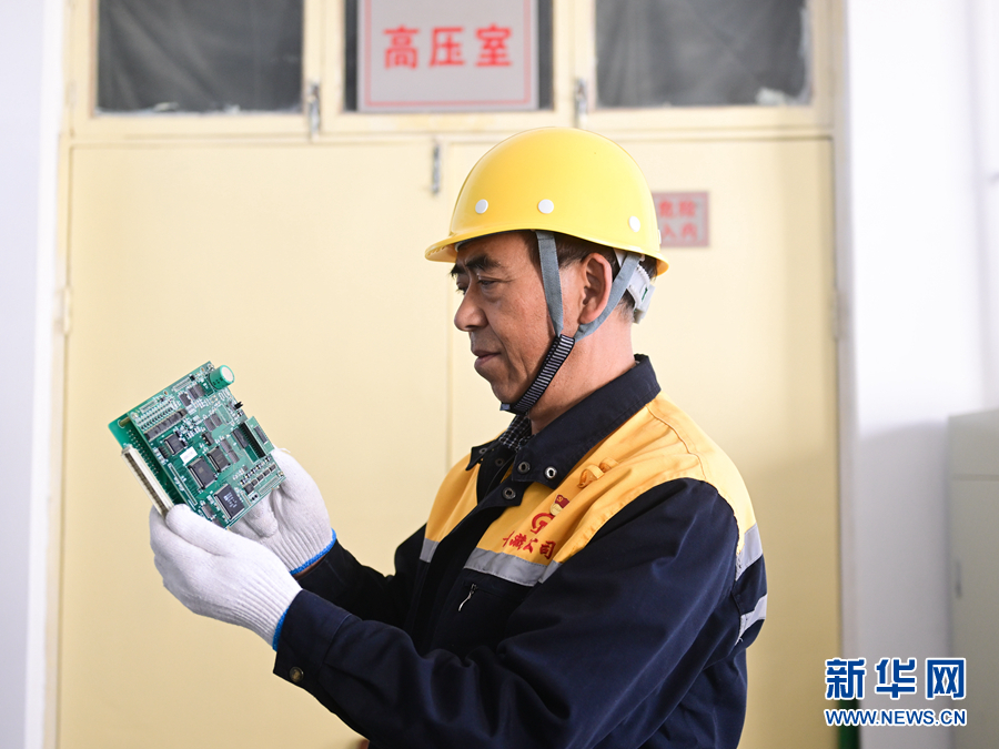 2月5日,在青藏集團(tuán)有限公司西寧供電段格爾木檢修車間,王永忠在查看一塊電路板是否有故障。新華社記者 張龍 攝