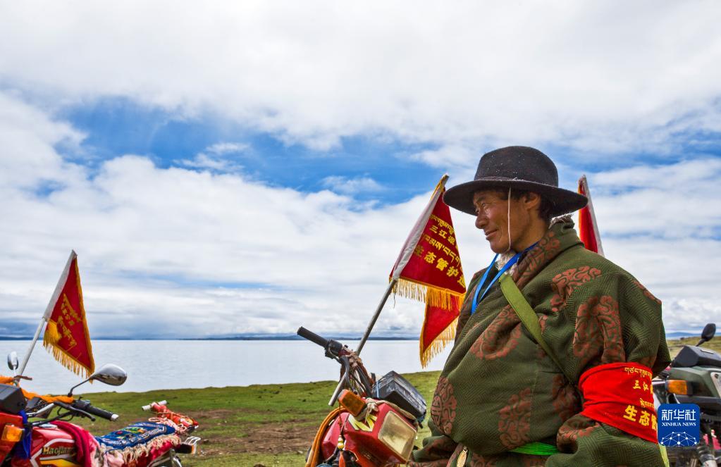 作為三江源國家公園的一名生態(tài)管護(hù)員,尼瑪扎西每天在放牧自家牛羊的同時,也承擔(dān)撿拾垃圾、巡護(hù)湖泊草場、巡查和保護(hù)野生動物等職責(zé)。