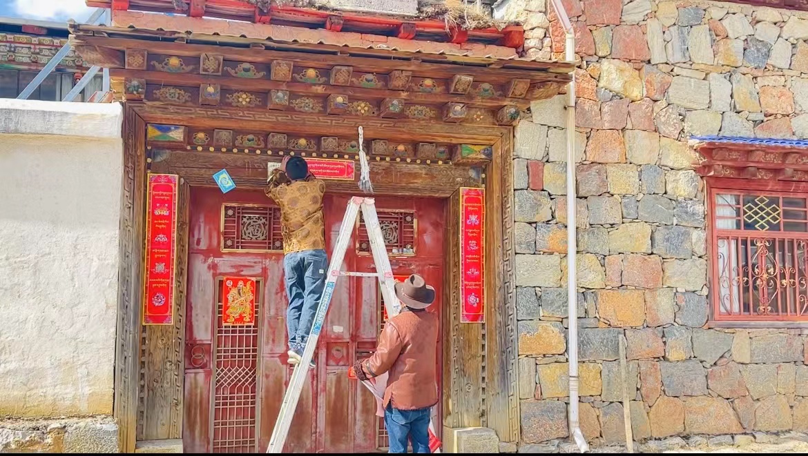 魯茸架起梯子貼起了對聯(lián),家里廳堂里掛上喜慶的藏式燈籠,藏式茶幾上擺滿了各色水果、飲料和糖果,小孫女單珍也在忙碌的大人間追逐嬉鬧。初稱也沒閑著,仔細(xì)打掃了去年在自家門口開的房車營地,過年期間,已經(jīng)有客預(yù)定了。
