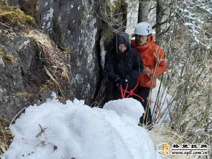 經(jīng)過(guò)1小時(shí)車程和2小時(shí)蜿蜒陡峭爬行,消防救援人員于18時(shí)02分到達(dá)現(xiàn)場(chǎng)并迅速展開(kāi)救援行動(dòng)。 經(jīng)過(guò)現(xiàn)場(chǎng)偵查,發(fā)現(xiàn)2名游客被困于近90度的懸崖上,1名游客面部有輕微擦傷,被困已近5小時(shí)。由于被困崖壁近乎垂直,可操作空間極度有限,經(jīng)過(guò)半個(gè)多小時(shí)的營(yíng)救,被困人員被成功救出并轉(zhuǎn)移至安全地帶,調(diào)整狀態(tài)后在整個(gè)救援隊(duì)伍的護(hù)送下安全抵達(dá)雨崩上村。