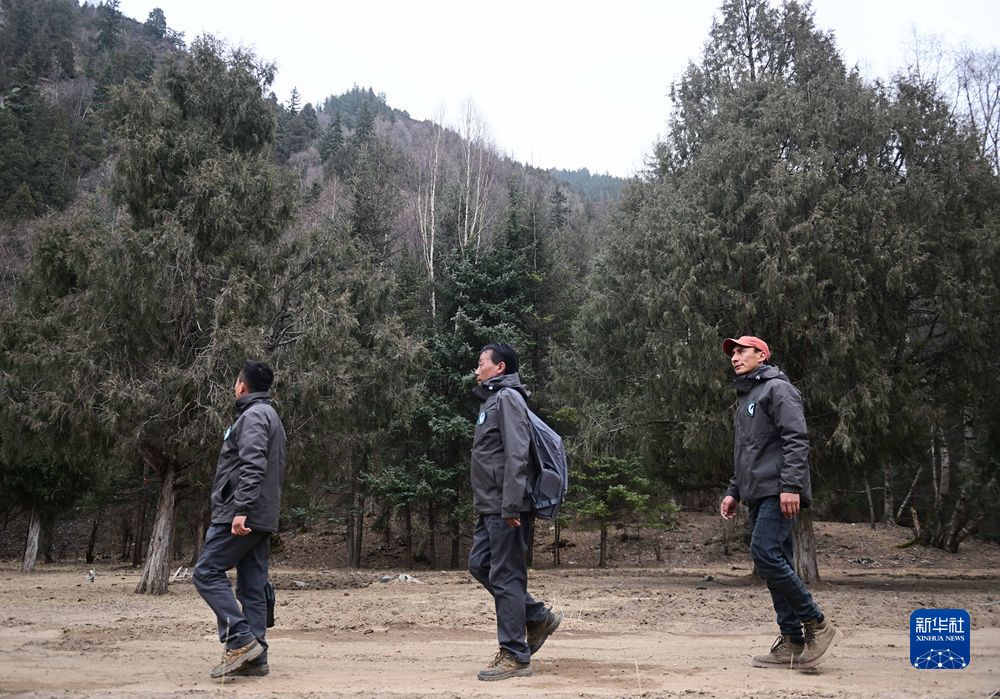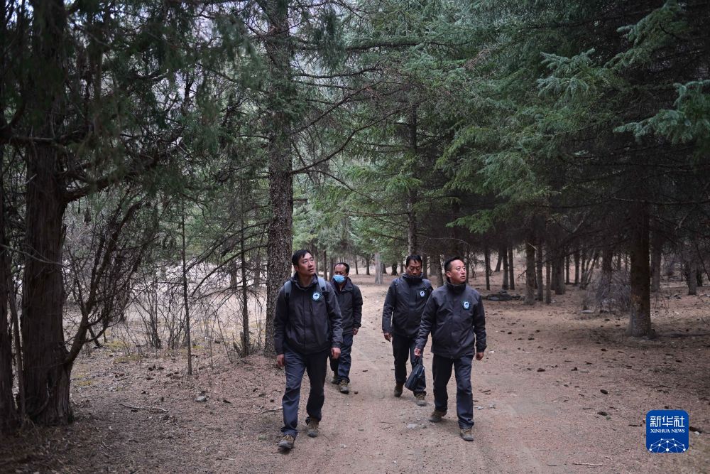 3月24日,在青海省黃南藏族自治州麥秀林場(chǎng),護(hù)林員在巡護(hù)林區(qū)。新華社記者 張龍 攝