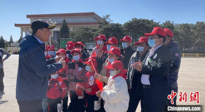 “西側(cè)這座建筑是人民大會堂,東面是中國國家博物館;矗立在前方的是人民英雄紀念碑?!鄙娌毓ぷ鳈C構(gòu)有關(guān)領(lǐng)導(dǎo)陪同患兒游覽,介紹天安門廣場及周圍建筑。
