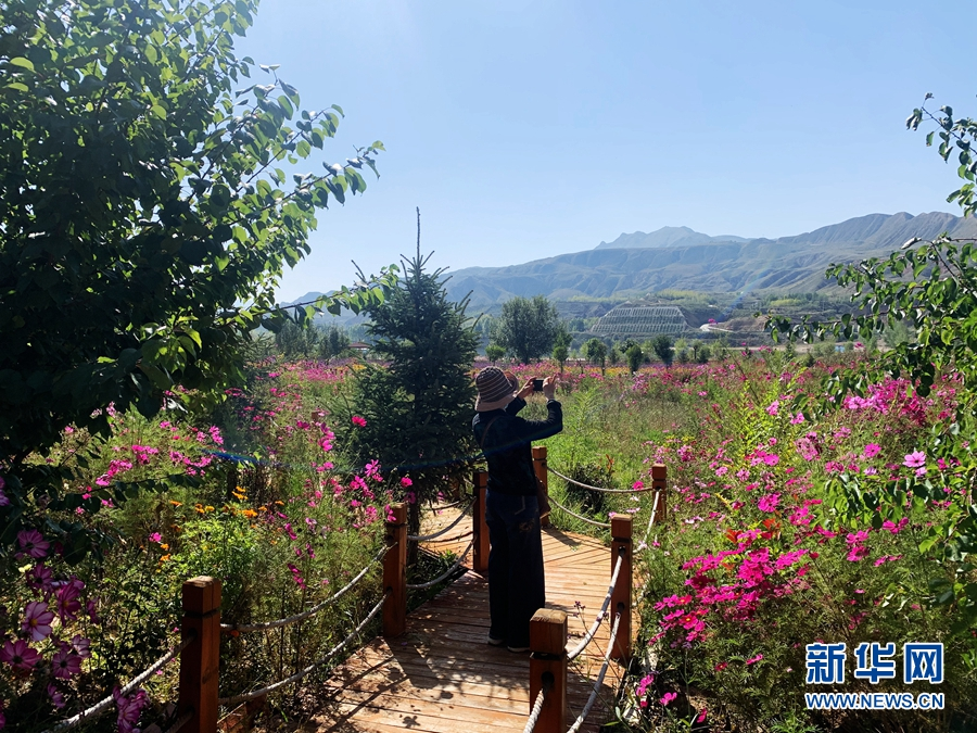 (資料圖)游客在海東市化隆回族自治縣安達(dá)其哈花海拍照。新華網(wǎng) 魚昊 攝