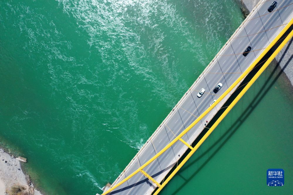4月9日,車輛從大橋上駛過(無人機(jī)照片)。新華社記者 耿輝凰 攝