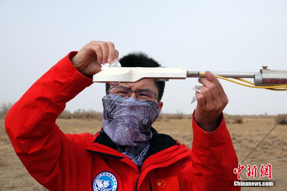 格爾木河流域草地綜合觀測站,中科院空天院科考隊員進行科研設(shè)備維護工作。孫自法 攝