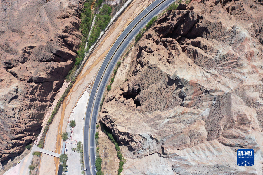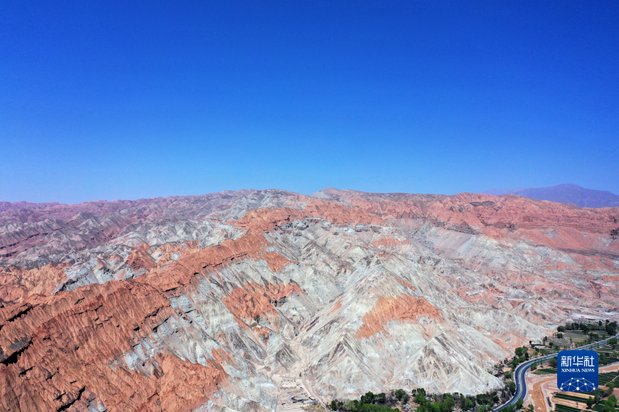 這是4月17日拍攝的青海省海南藏族自治州貴德縣境內(nèi)的丹霞地貌(無人機(jī)照片)。新華社 趙玉和 攝
