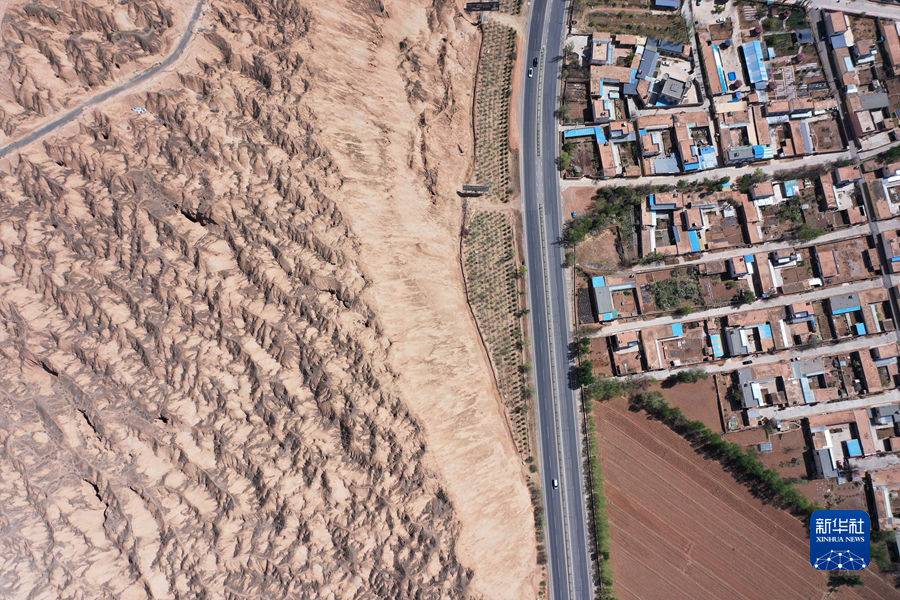 這是4月17日拍攝的青海省海南藏族自治州貴德縣境內(nèi)的丹霞地貌(無人機(jī)照片)。新華社 耿輝凰 攝