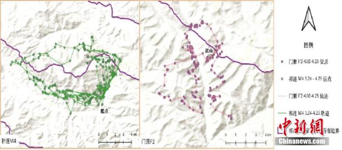 資料圖為被追蹤雪豹活動(dòng)點(diǎn)位分布圖。中新社發(fā) 祁連山國家公園青海省管理局 供圖