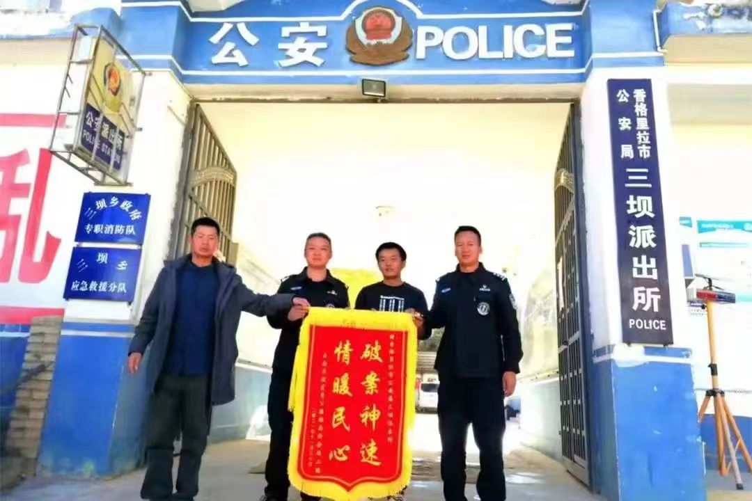 2022年4月18日,三壩派出所接到虎香公路六分部工作人員報(bào)警稱拌合站內(nèi)的灌車于17日被砸,攝像頭被盜,請(qǐng)求出警,到達(dá)現(xiàn)場(chǎng)后張宏帶領(lǐng)民輔警進(jìn)行現(xiàn)場(chǎng)勘查并對(duì)附近村民進(jìn)行走訪,經(jīng)過大量工作成功鎖定犯罪嫌疑人身份,將被盜的攝像頭找回,4月22日虎香公路六分部2名工作人員帶著一面印有“破案神速解民憂,感謝人民好警察”的錦旗來(lái)到三壩派出所找到張宏,對(duì)他們迅速找回被盜物品及破獲車輛被砸案表示感謝。